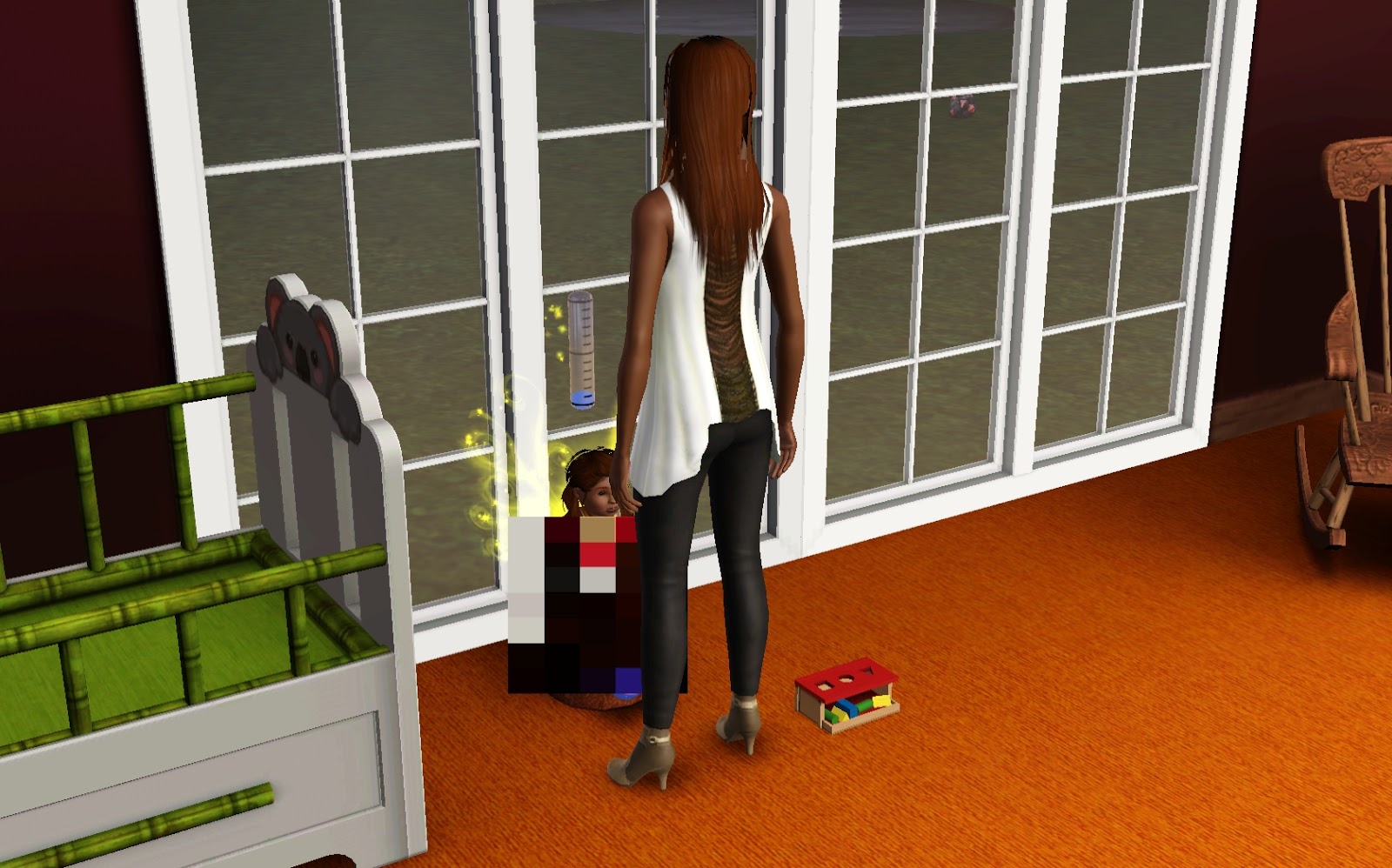 And off they go. They got baby chimes because I am still working on her wish to up her woohoo skill. She is at half way.